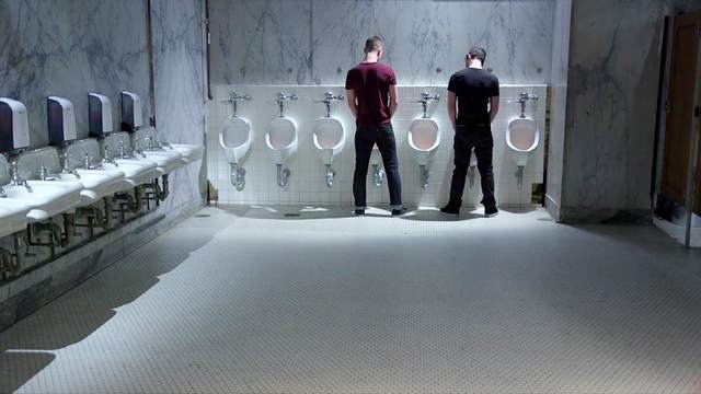Four guys blow their dicks in the toilet